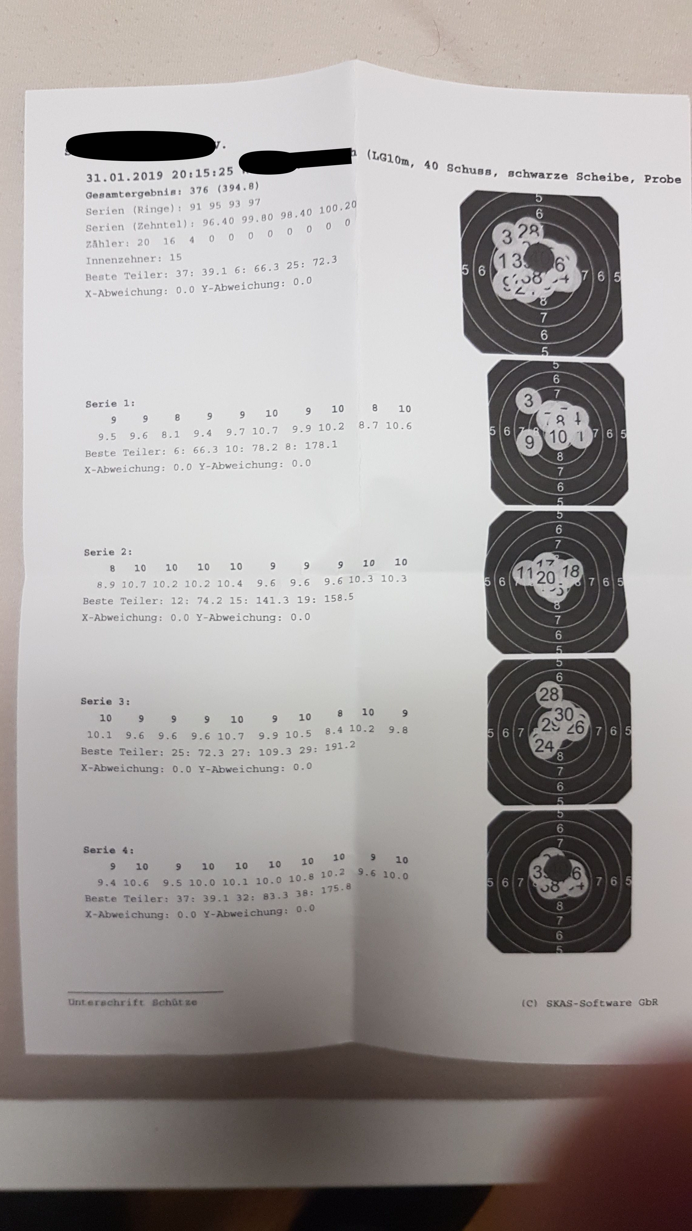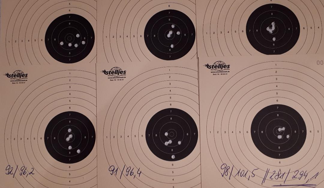 P.S. auf die ersten beiden Scheiben Präzision und Duell habe ich jeweils 10 Schuss abgegeben, deshalb kann ich dazu keine Ergebnisse in 5 Schuss Serien angeben