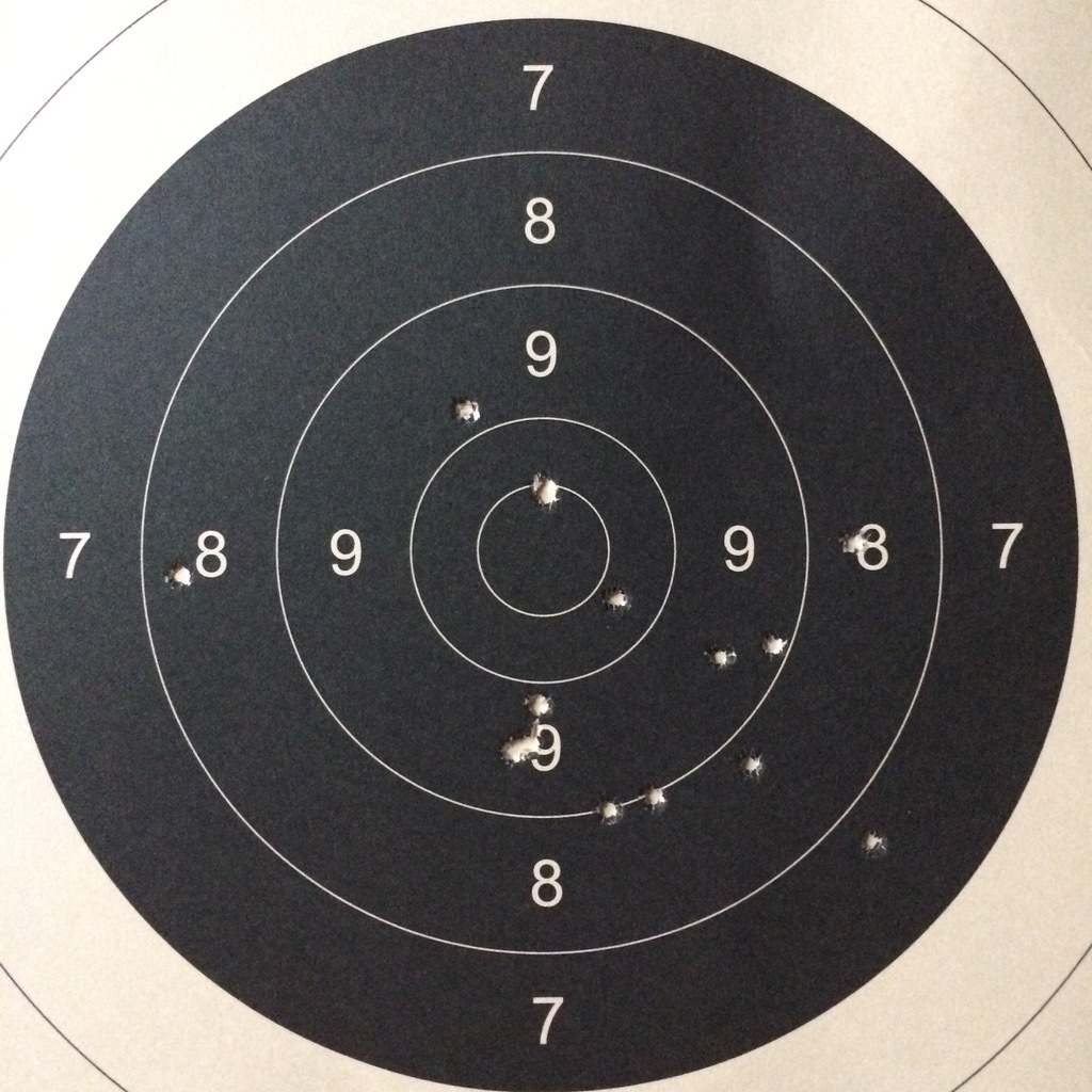 War gar nicht so kalt wie befürchtet, aber ziemlich windig - vor allem im Präzisionsteil fand ich das einerseits sehr "störend", weil an gerades Absenken irgendwie gar nicht zu denken war. Andererseits hatte ich deutlich weniger Probleme mit dem Abziehen als sonst. Ich habe wie im Duell einfach sobald es halbwegs gepasst hat ausgelöst - und das in den allermeisten Fällen (bis auf die 7 unten rechts) ziemlich sauber ^^