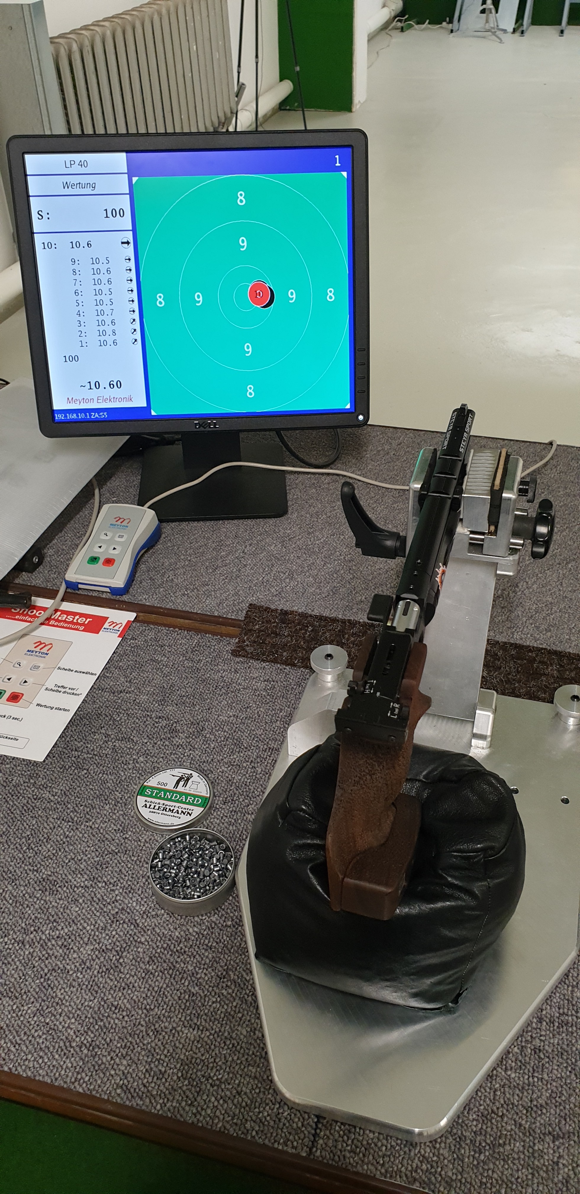 Ein Schützenkollege schießt die preiswerten Trainings-Diabolos recht erfolgreich. (DM LP-Auflage Sen.I 9.Platz).