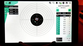 So, Sportquantum S10 montiert und in Betrieb genommen. 9 Munuten für die Maueranker zur Befestigung der 12,5 kg Zielscheibe gebraucht und 1 Minute für das 1. Hochfahren und Verbinden des Tablets. Gleich mal einen Wettkampf LP Auflage geschossen- Visierung noch nicht ganz optimal auf Zielscheibe eingestellt- aber schon mal gut.