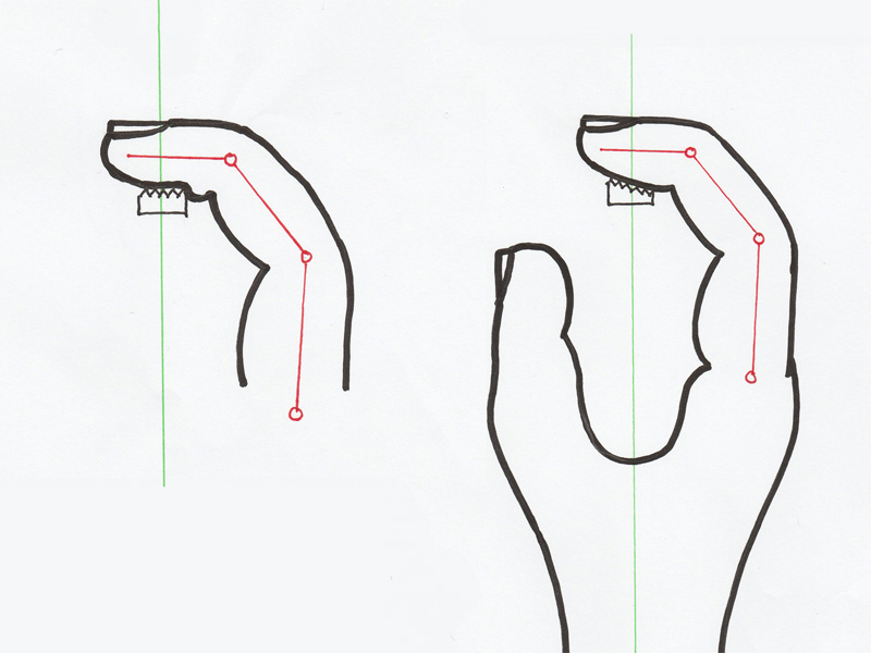 Das schräge züngel hat scharfe Rillen und insgesamt passt die geometrie so dass der schräge Finger korrigiert wird. Der Finger wird zur Kuppe dünner....das wird ausgeglichen durch das schräge züngel....