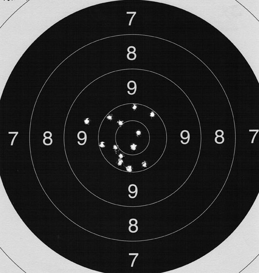 Wenn ich mich recht erinnere, war die Aussage, dass man bei kurzen Läufen man mit ca. 35mm Streukreis zufrieden sein muss und bei längeren Läufen waren um die 15mm Streukreis.