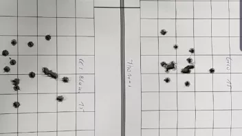 Mit meiner X-Six liege ich mit der billigsten Muni (S&B Schüttpackung) bei ca. 30mm Streukreis. Da sind die Vereinskollegen neidisch. 8) Meine S&B ist unten rechts auf dem zweiten Bild.