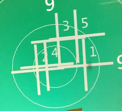 • Interessant wäre das Gesamtbild mit allen Schüssen drauf um den Trefferkreis ermitteln zu können.