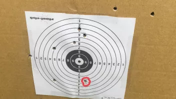 Ich bin gerade dabei mein Luftgewehr einzuschießen. Jedoch weiß ich leider nicht wie viele "Klicks" ich das Zielfernrohr jeweils nach oben oder unten oder nach Links oder Rechts verstellen muss. Ich habe schon einmal ein paar Schuss auf die Zielscheibe abgegeben und habe mich mit dem letzten Schuss auch schon einigermaßen der Mitte angenähert. Der letzte Schuss ging in die 5 etwas zuweit Rechts (entschuldigt das ich die Zielscheibe verkehrtherum aufgestellt habe). Wie viele "Klicks" muss ich das Zielfernrohr jetzt verstellen damit ich genau die Mitte treffe? Auf dem Bild könnt ihr meine Schüsse sehen. Wie gesagt mein letzter Schuss ging auf die 5. Ich habe natürlich immer in die Mitte gezielt. Also wie muss ich mein Zielfernrohr jetzt einstellen damit ich in die Mitte treffe? Ich habe euch meinen letzten Treffe Rot markiert. Wenn ich das Zielfernrohr in Richtung "up" verstelle dann schieße ich doch weiter nach oben oder?