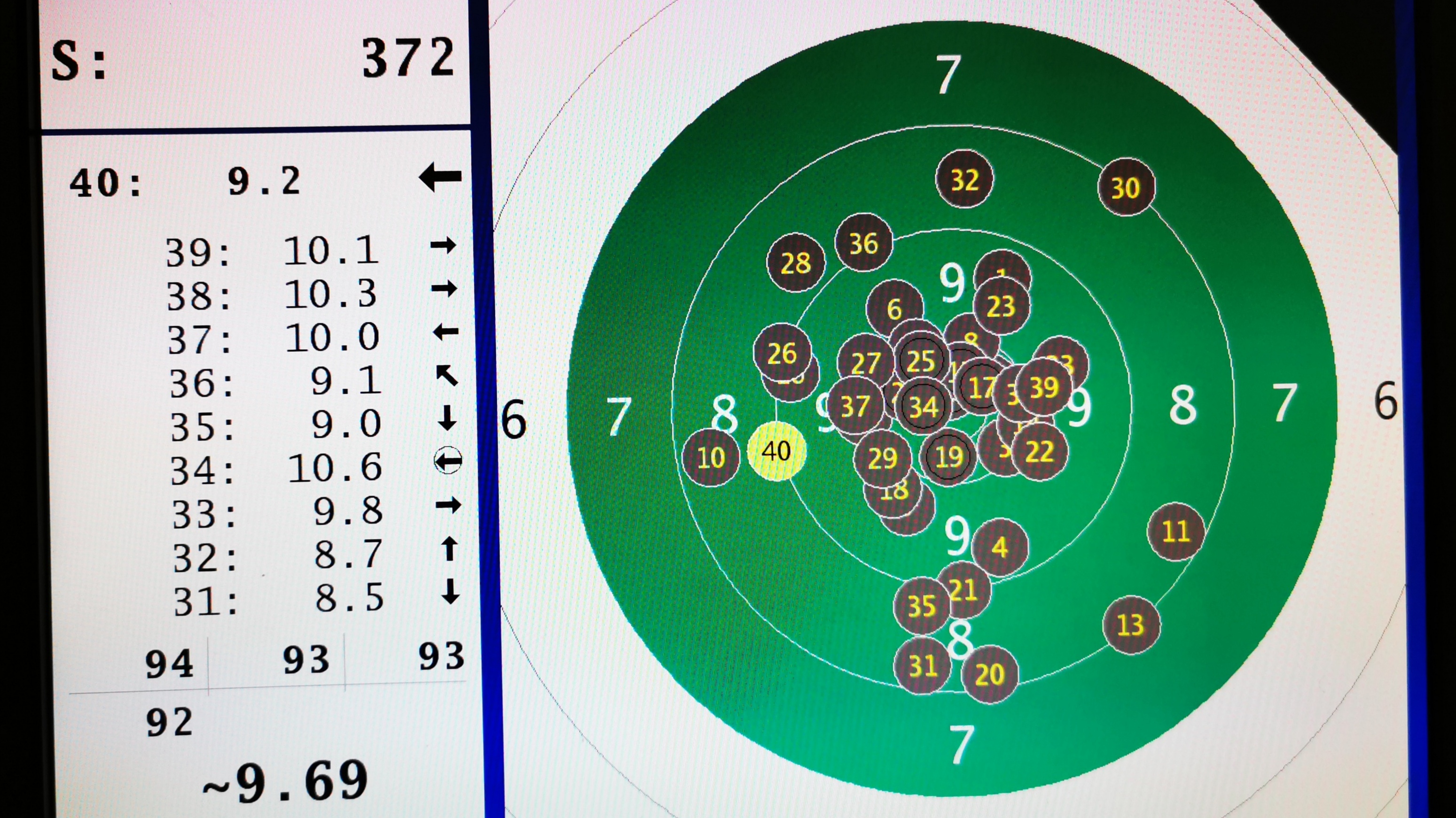 Vielleicht hilft es mir beim Pistoleschießen ein wenig weiter, damit die Ausreißer nach rechts weniger werden.