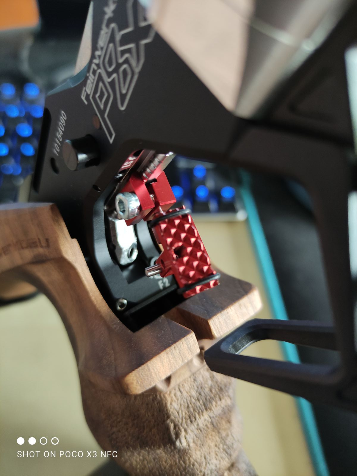 Abzugzüngel zusätzlich noch so rotiert dass das Fingerglied sich schön in die Mulde hinein legt, der Mittelpunkt des rotierten Züngels liegt aber
