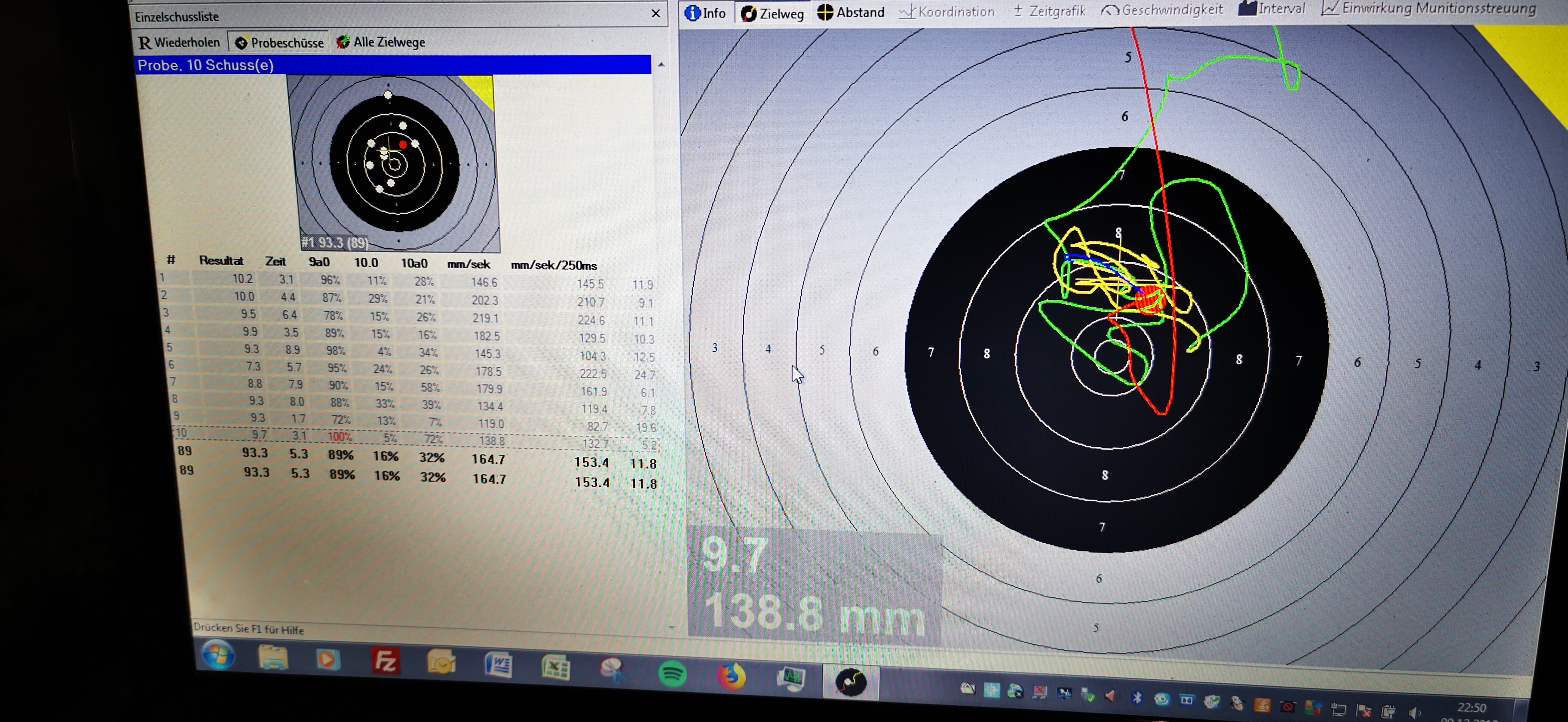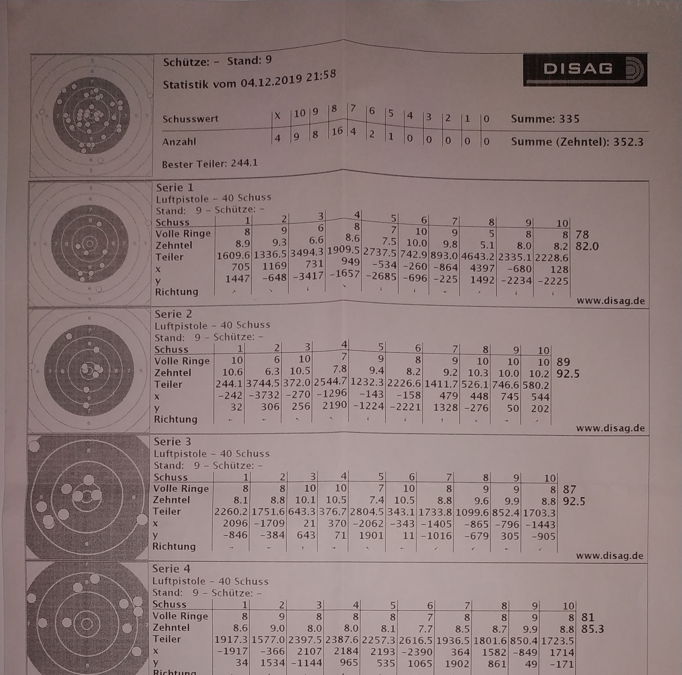 Meine Leistung lag bisher recht konztant etwa bei 310 - 320 Ringen.