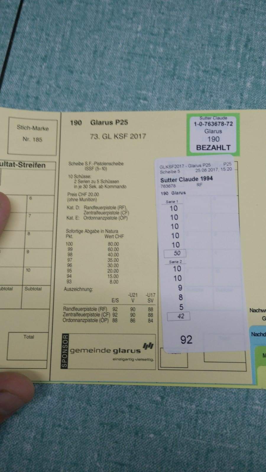 Kurioserweise hatten wir 4 in Spopi an diesem Tag alle das gleiche Gesamtergebnis und so zählte die Summe der letzten 5 Schüsse im Duell und die waren 50,49,48,47 = ich gewann ich die Silbermedaille.