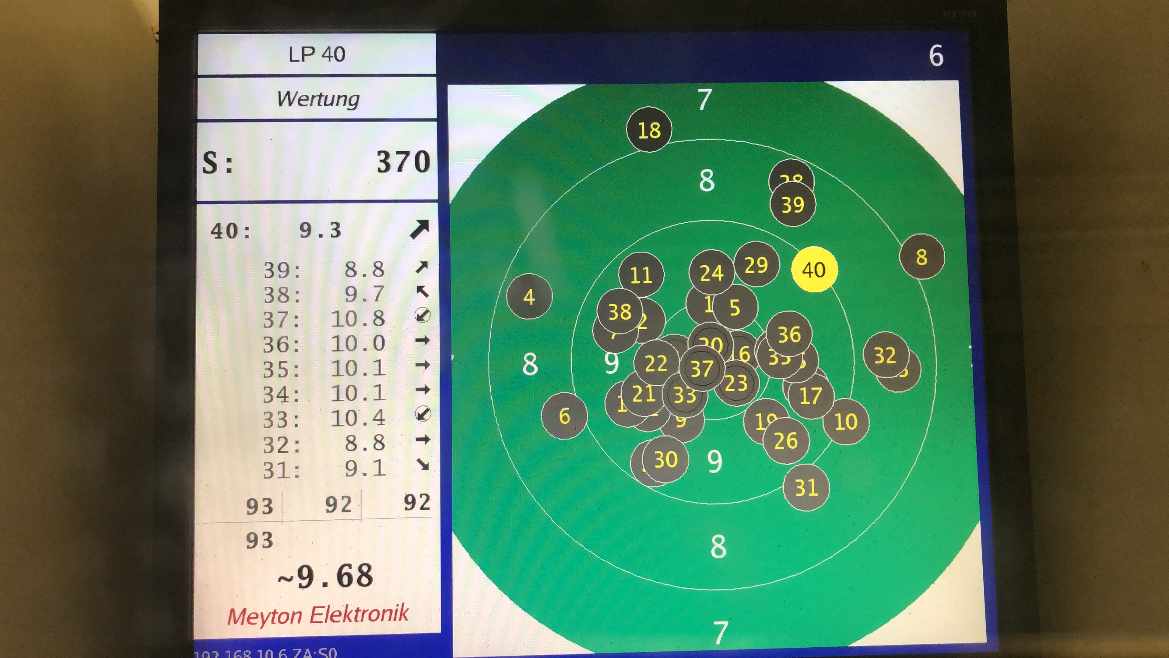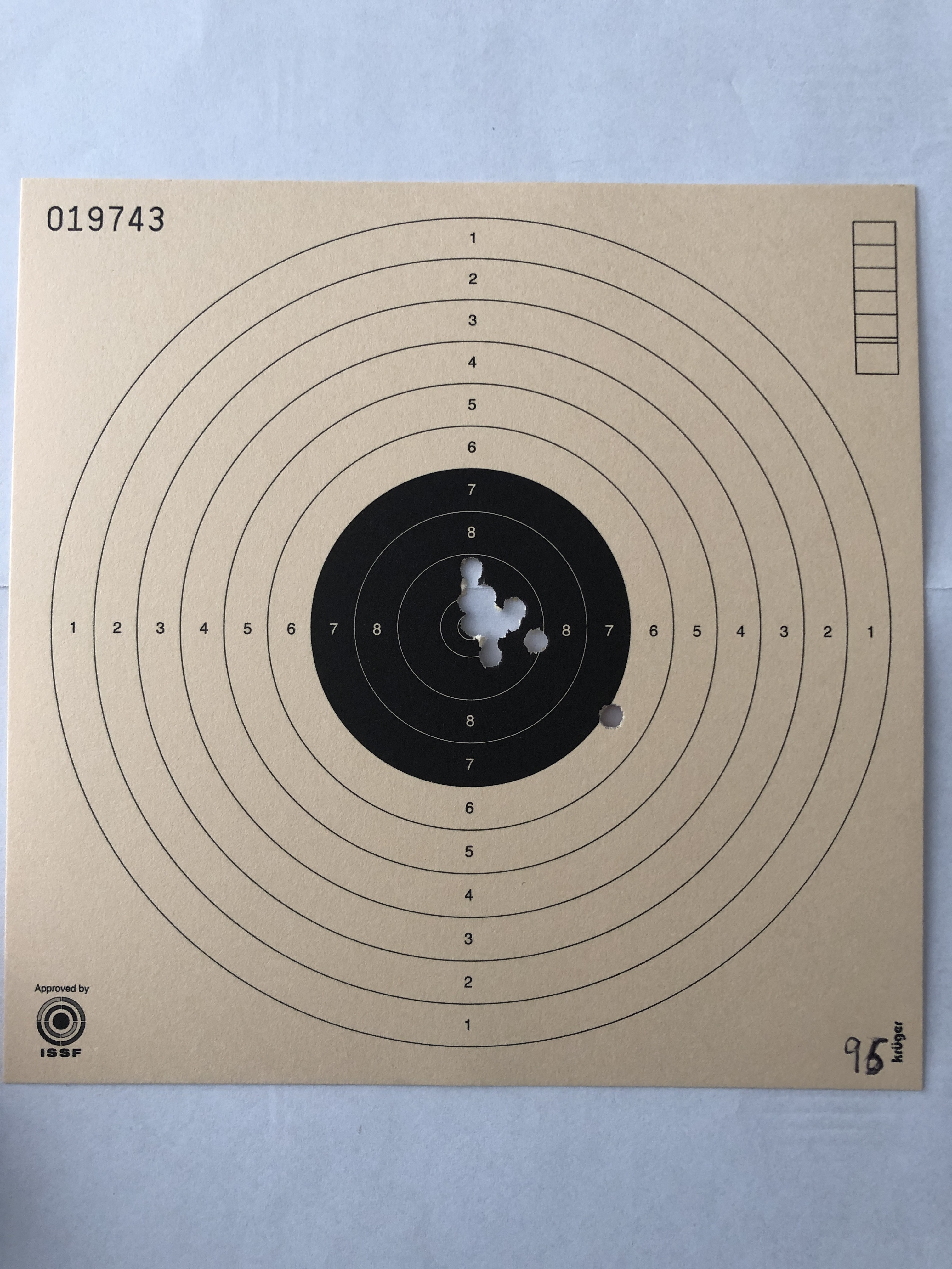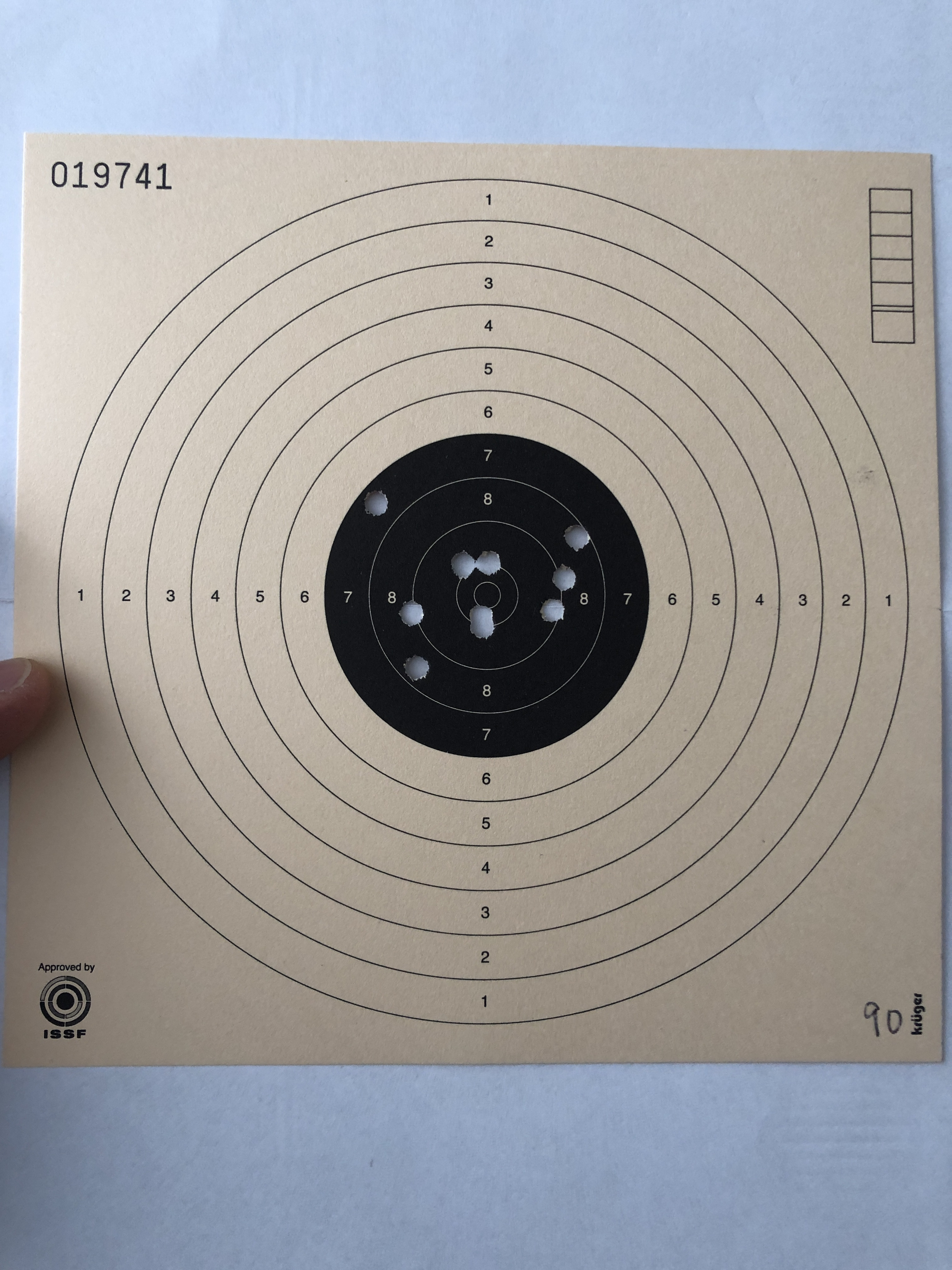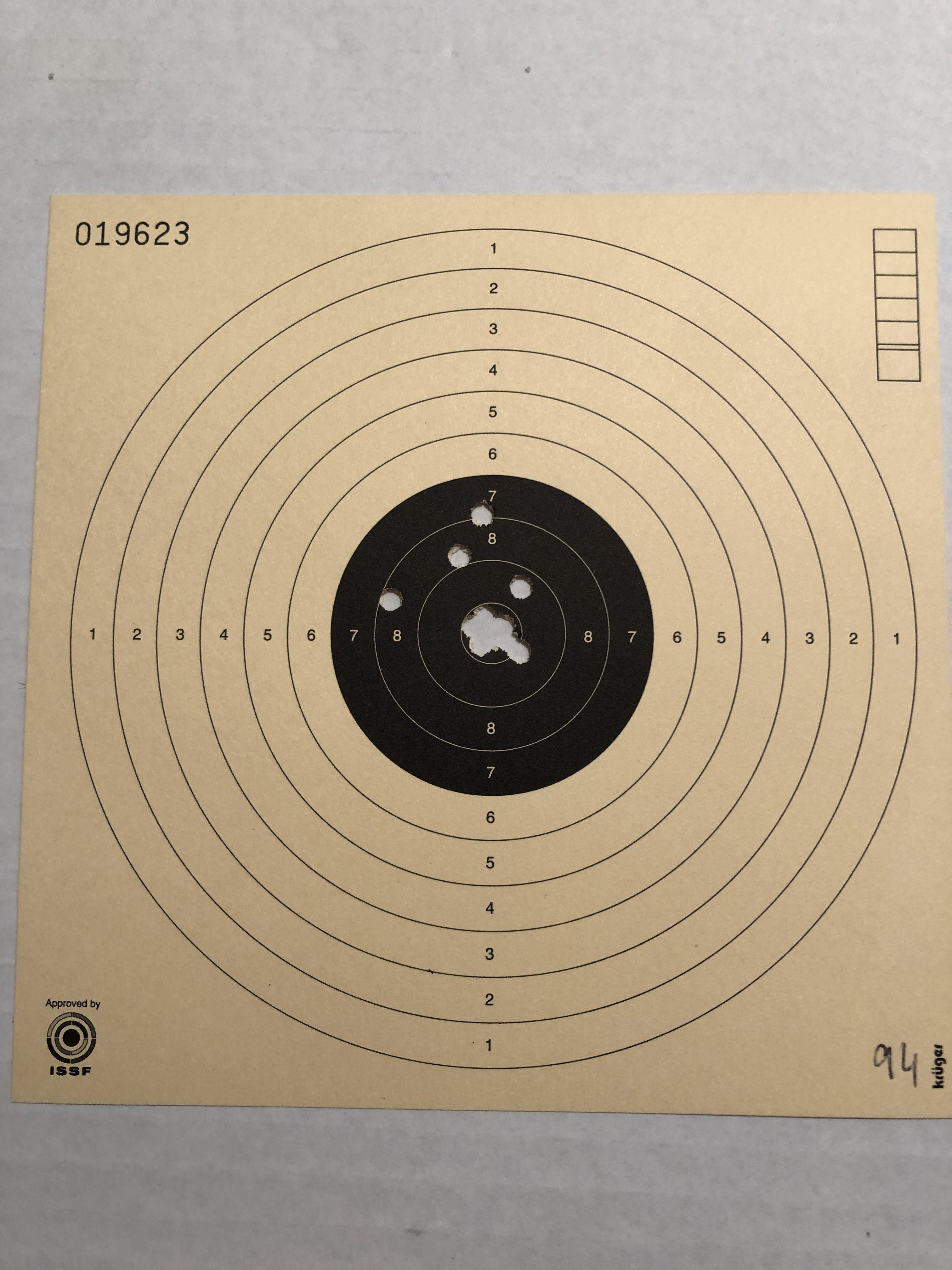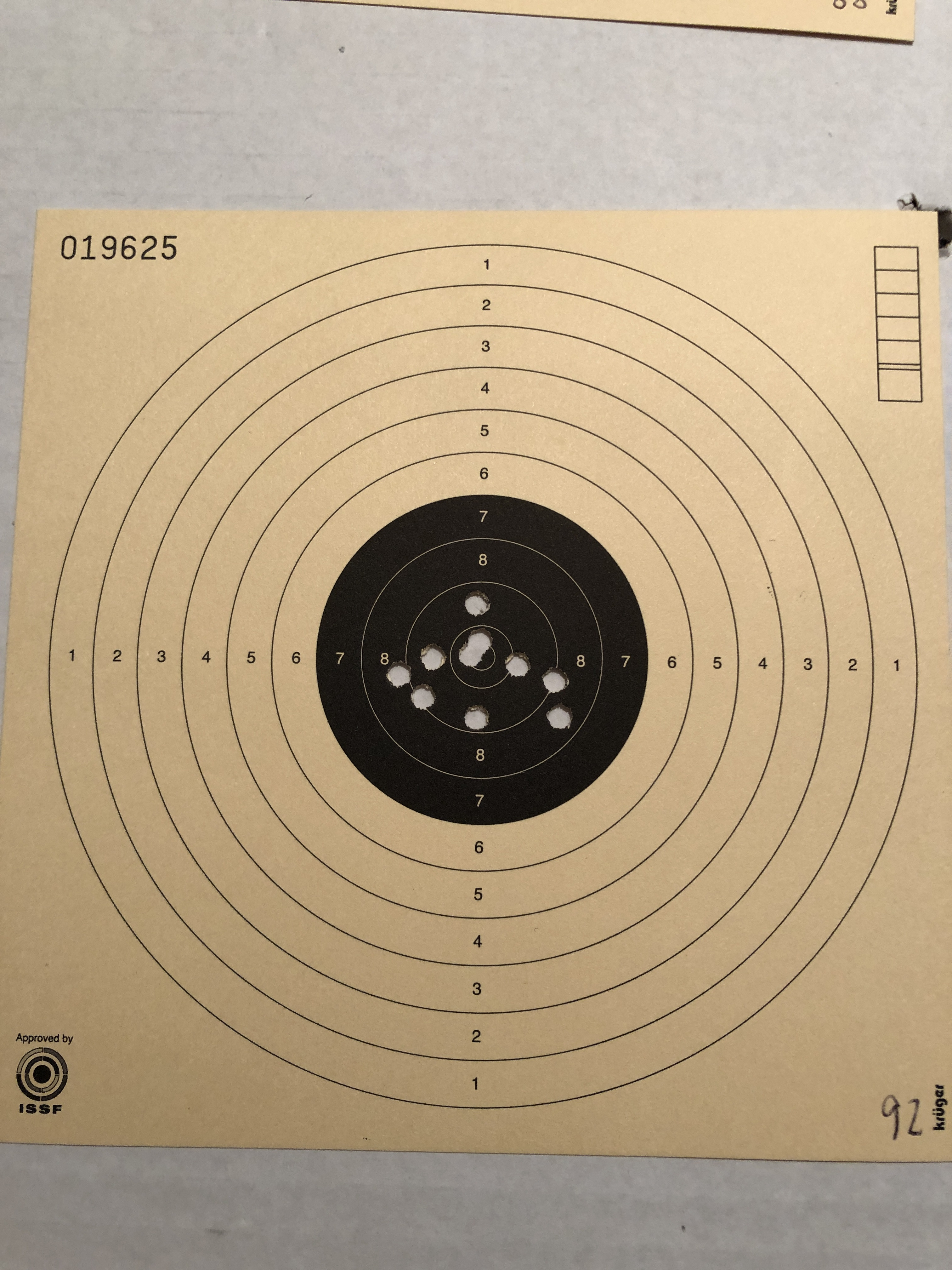 Heute noch mal 372 Ringe mit dem Luftgewehr ausgepackt. Schön konstant 92-93-94-93, nur mit ein paar Fehlern beim Abzug, die 8'er tun dann echt weh.