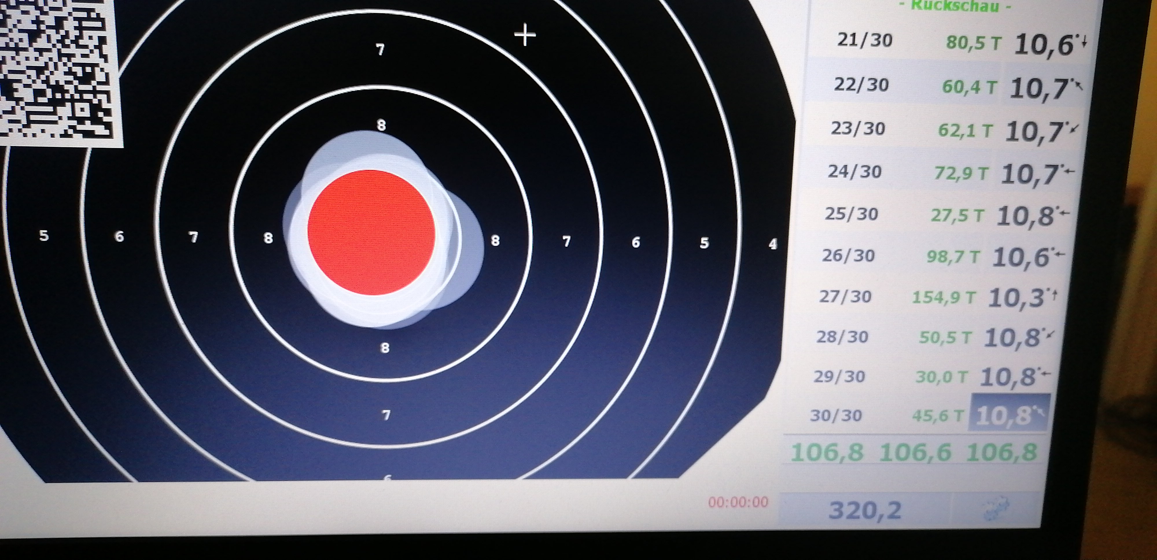 Ich habe am Montag noch mal sportliche 361 mit der Luftpistole rausgehauen. Da freue ich mich zwar, dass es nach längerer Zeit endlich wieder über die 360 komme, aber der letzte Schuss war ne 5 ![]()