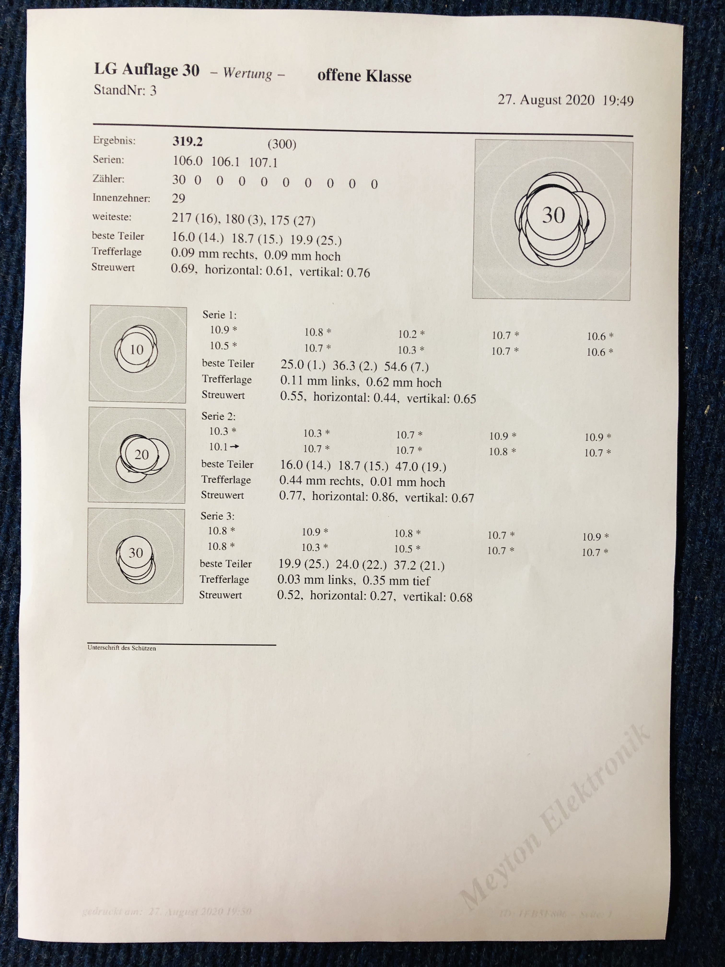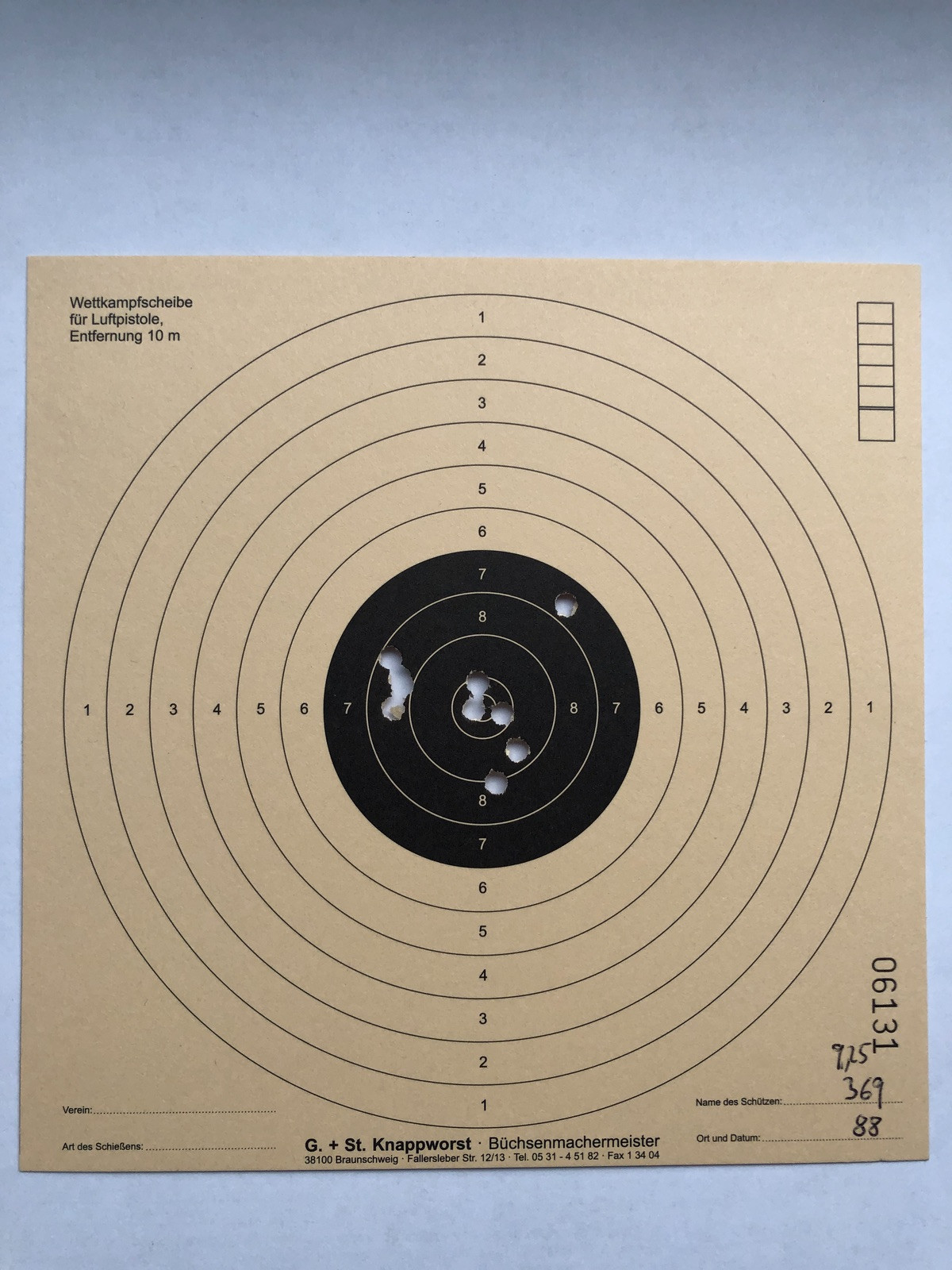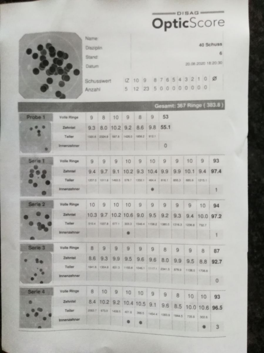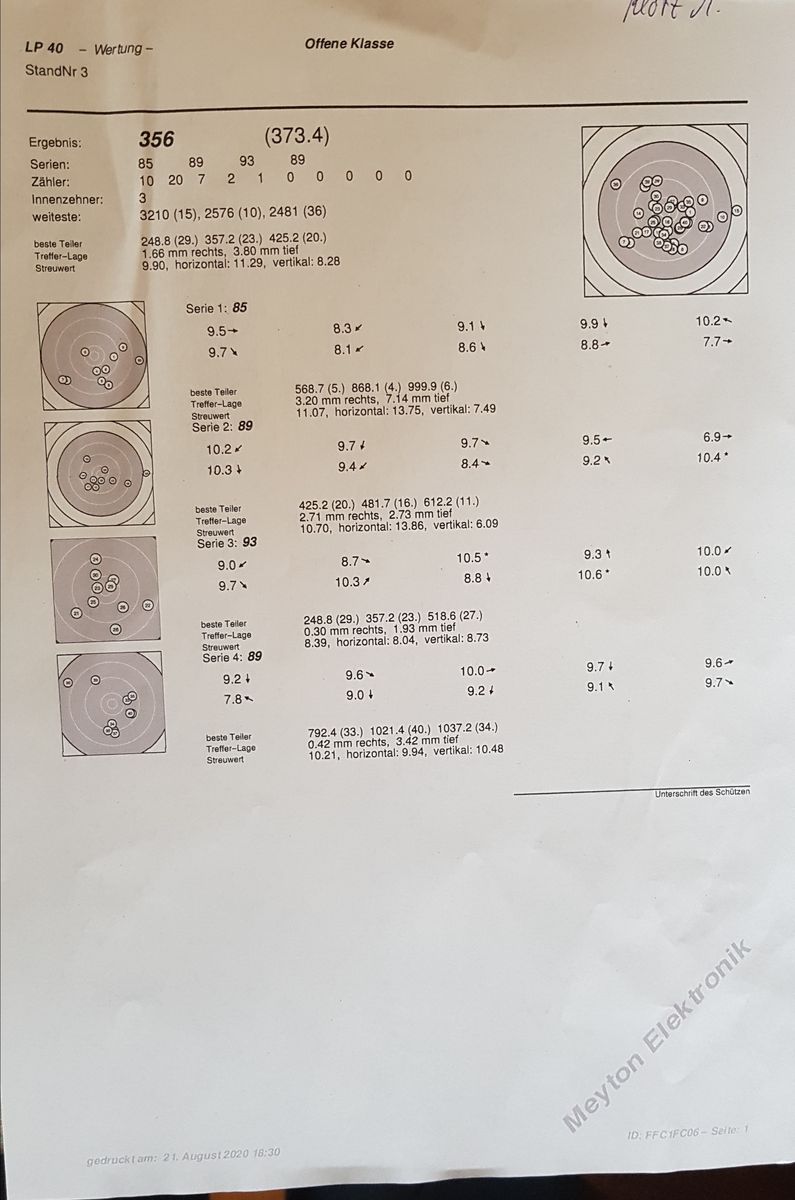 10m frei LP40 für August 358 Ringe. Meine persönliche Bestleistung.