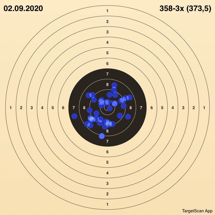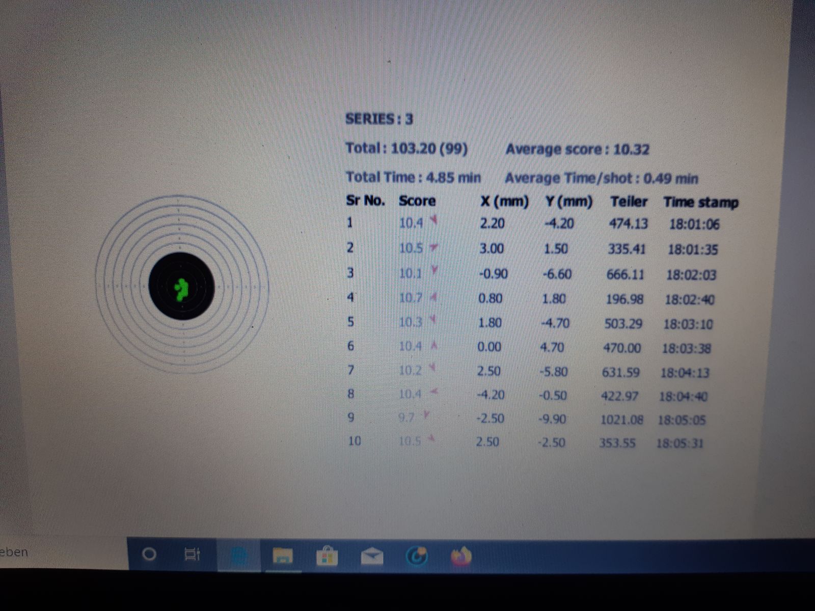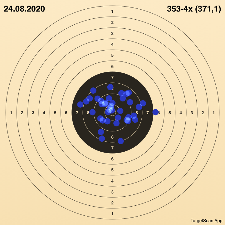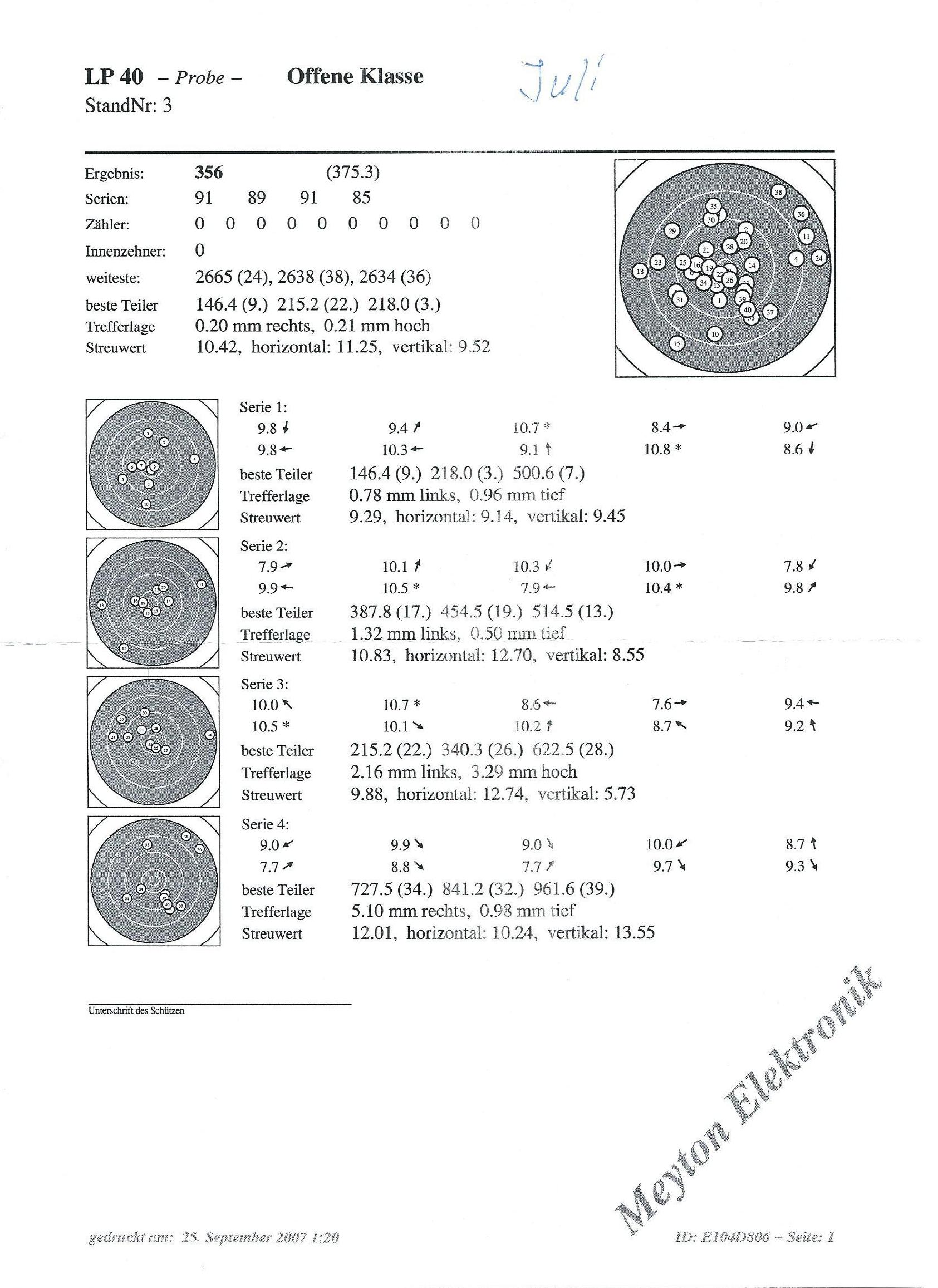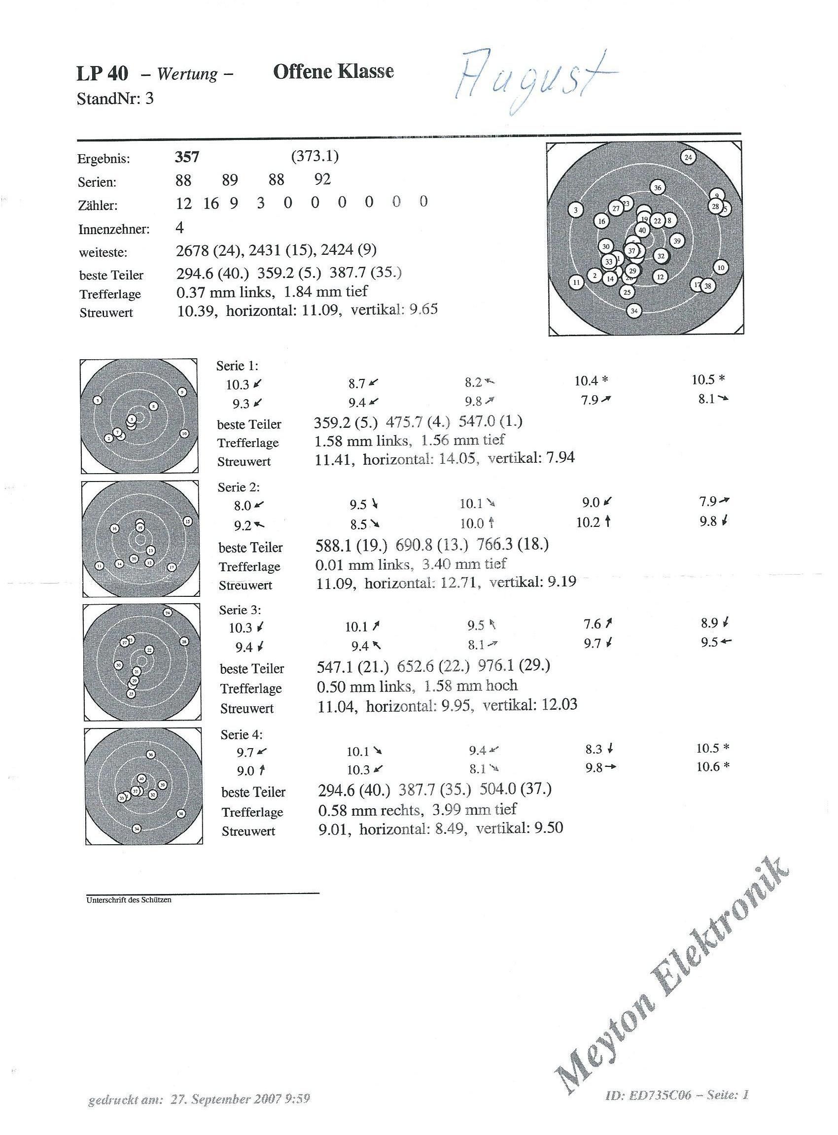 10m frei LP40 für August 358 Ringe. Meine persönliche Bestleistung.