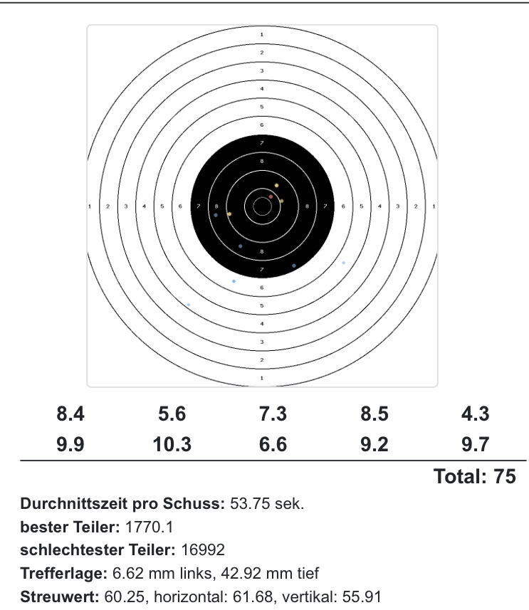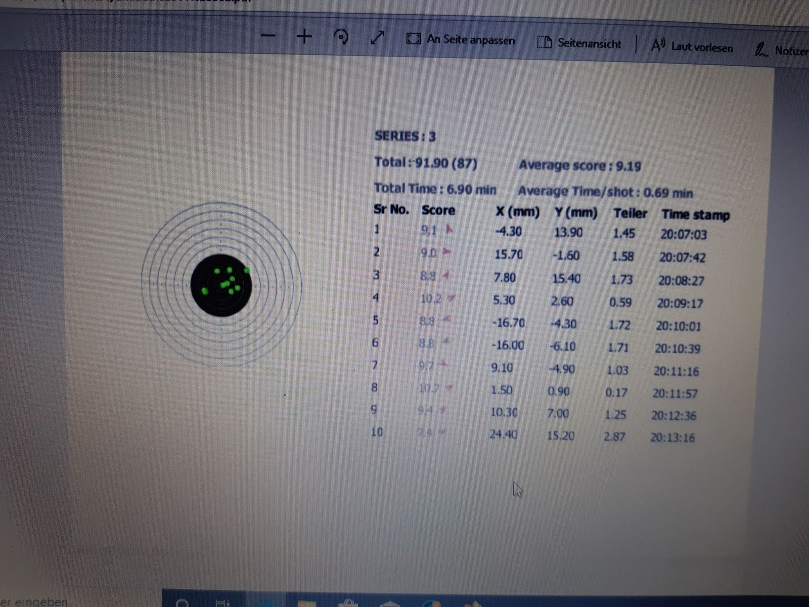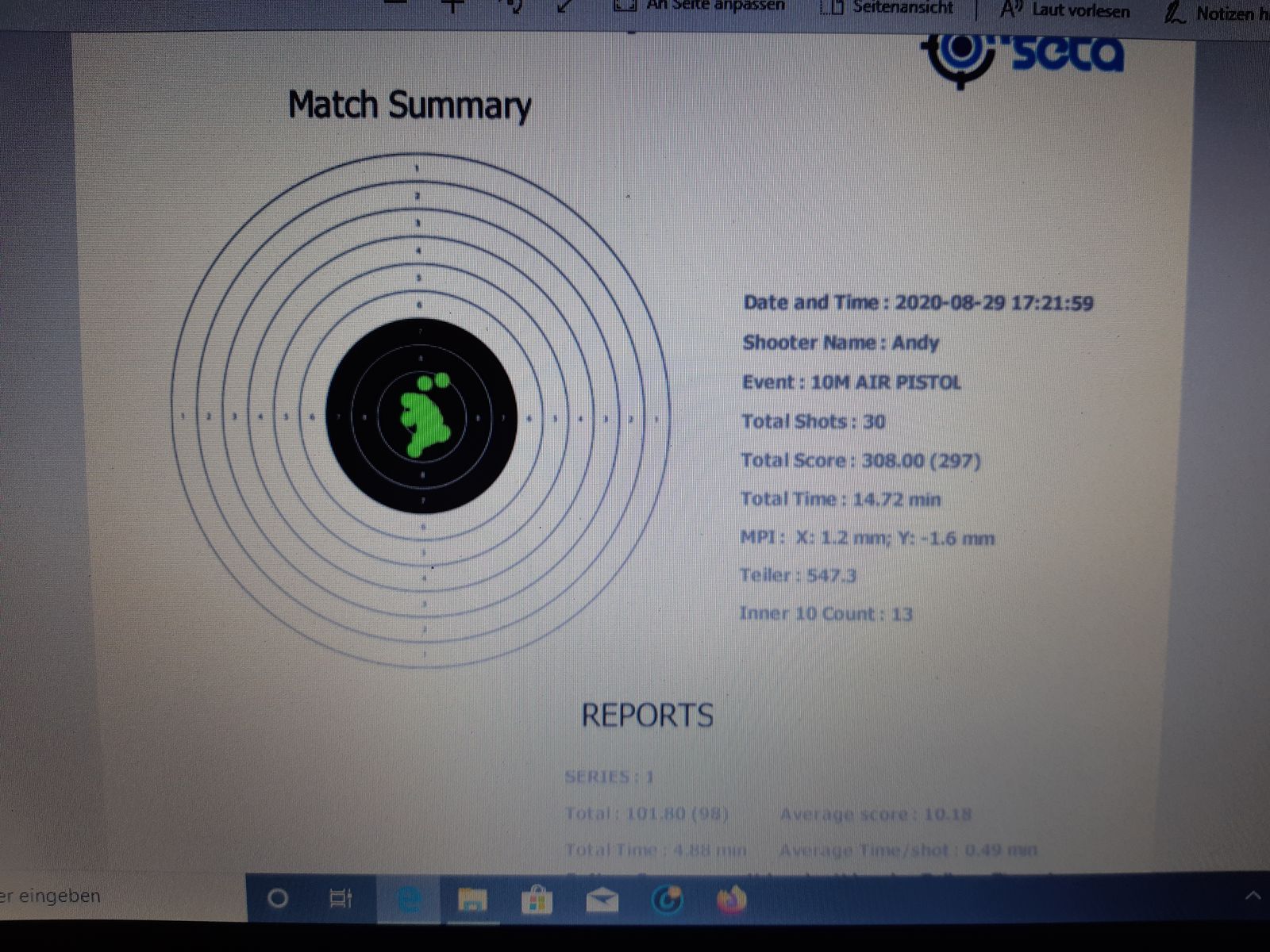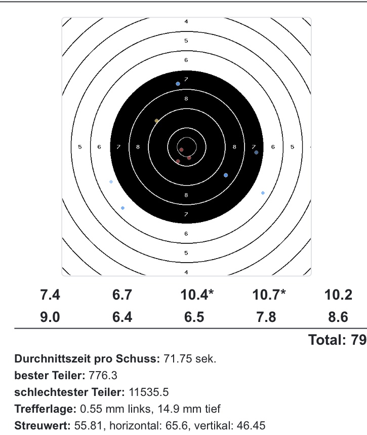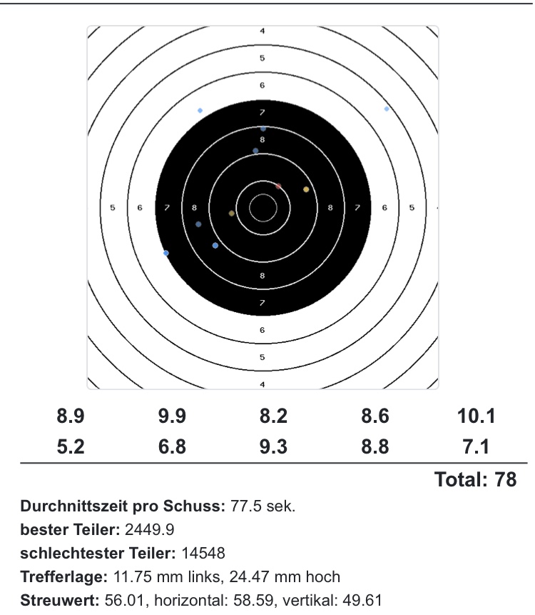 10m frei LP40 für August 358 Ringe. Meine persönliche Bestleistung.
