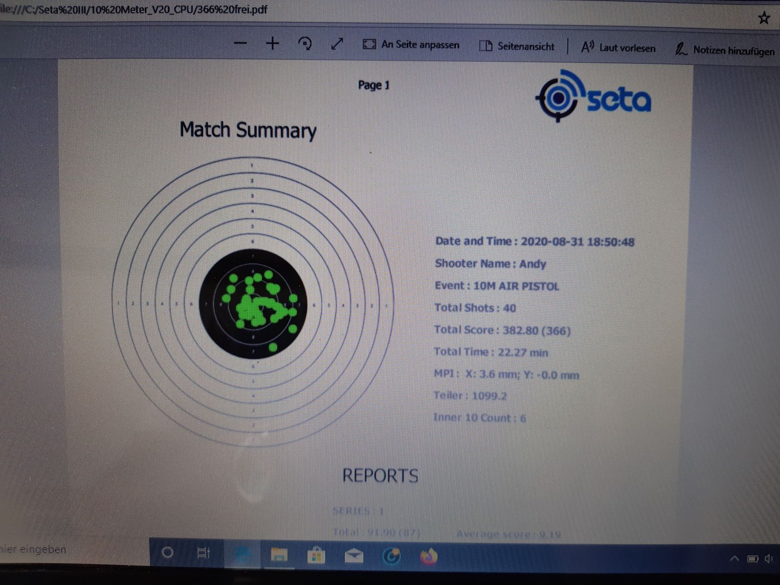 Na dann melde ich doch gleich 369 Ringe mit der Luftpistole und 379 Ringe mit dem Luftgewehr.