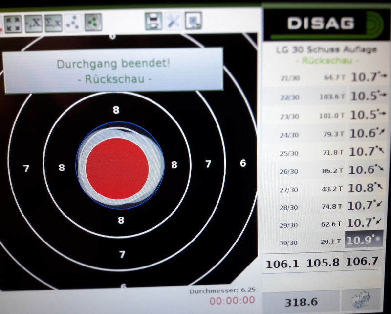 2.Durchgang Zehntel-Wertung: 106,6 – 106,0 – 106,4 # 319,0 Ringe