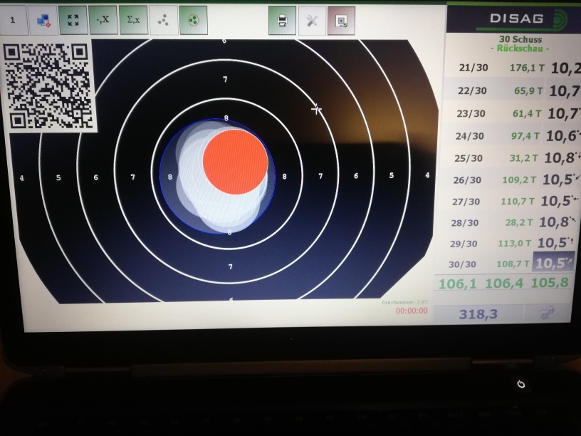 Ich melde also für LP 363 Ringe (92-91-91-89). Technisch eigentlich nicht wahnsinnig sauber, aber irgendwie mit viel Glück viele 9´er und keine 7 dabei gehabt. Ärgern oder hinnehmen und darüber freuen?