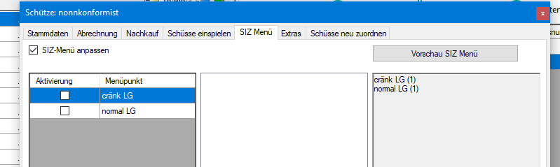Ich habe alle Klassen des BSSB in den Klassen angelegt und zu jeder Klasse eine Ringwertung erstellt und zugeordnet. Wenn der Schütze sich jetzt am SIZ anmeldet, wir ihm seine, je nach alter und Waffe, Wertung angezeigt. Z.B. Ein LG Schütze Jahrgang 1980 bekommt „Meister Schutzen I“ angezeigt.