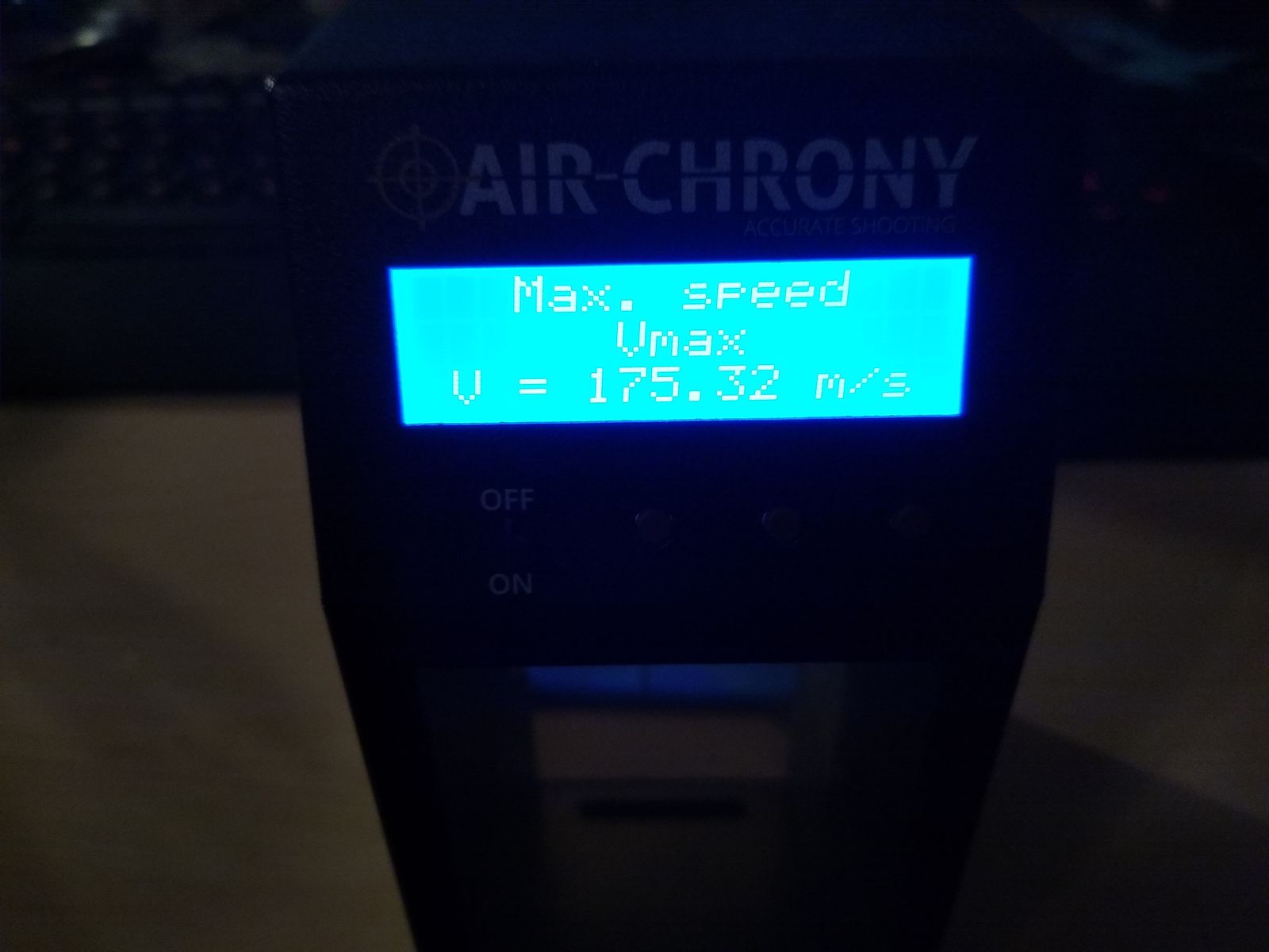 Heute habe ich das Teil mit katastrophalen Ergebnis gechront ( Chrony MK III ). Das Chrony im direkten Vergleich mit anderen Luftgewehr ( Kellergewehr Hämmerli AR 20 meiner Frau ), funktioniert leider sehr gut.
