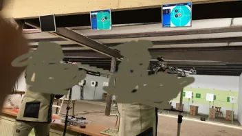 • Rechts neben der Tür sieht man noch ein kleines Touch-Display, damit werden die Stände, Gate usw. einzeln oder in Gruppen eingeschaltet. Im Schießraum zwei große Monitore zur Trefferanzeige, im Gastraum ein weiterer sowie bei Bedarf noch ein Beamer. Die Wettkämpfe streamen wir über Webscore auch live ins Internet. Das kommt auch bei den Gegnern sehr gut an. Und jeder in der Liga kann direkt sehen, wie der Wettkampf ausgegangen ist. Außerdem nutzen wir die einfache Möglichkeit des Anschlusses der RedDot Anlagen an die Messrahmen. Wir haben seit etwas mehr als einem Jahr eine Kids-Gruppe (7-11 Jahre), die ganz begeistert mit den Lasersachen trainieren.