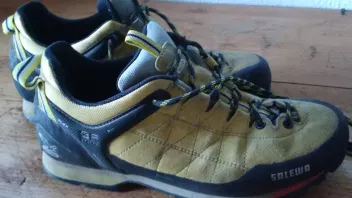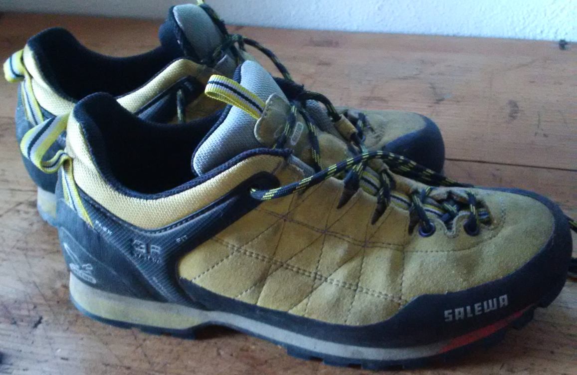 Schieße mit Approach-Schuhen (lustige Bezeichnung) von Salewa, die es leider in dieser Form nicht mehr gibt.