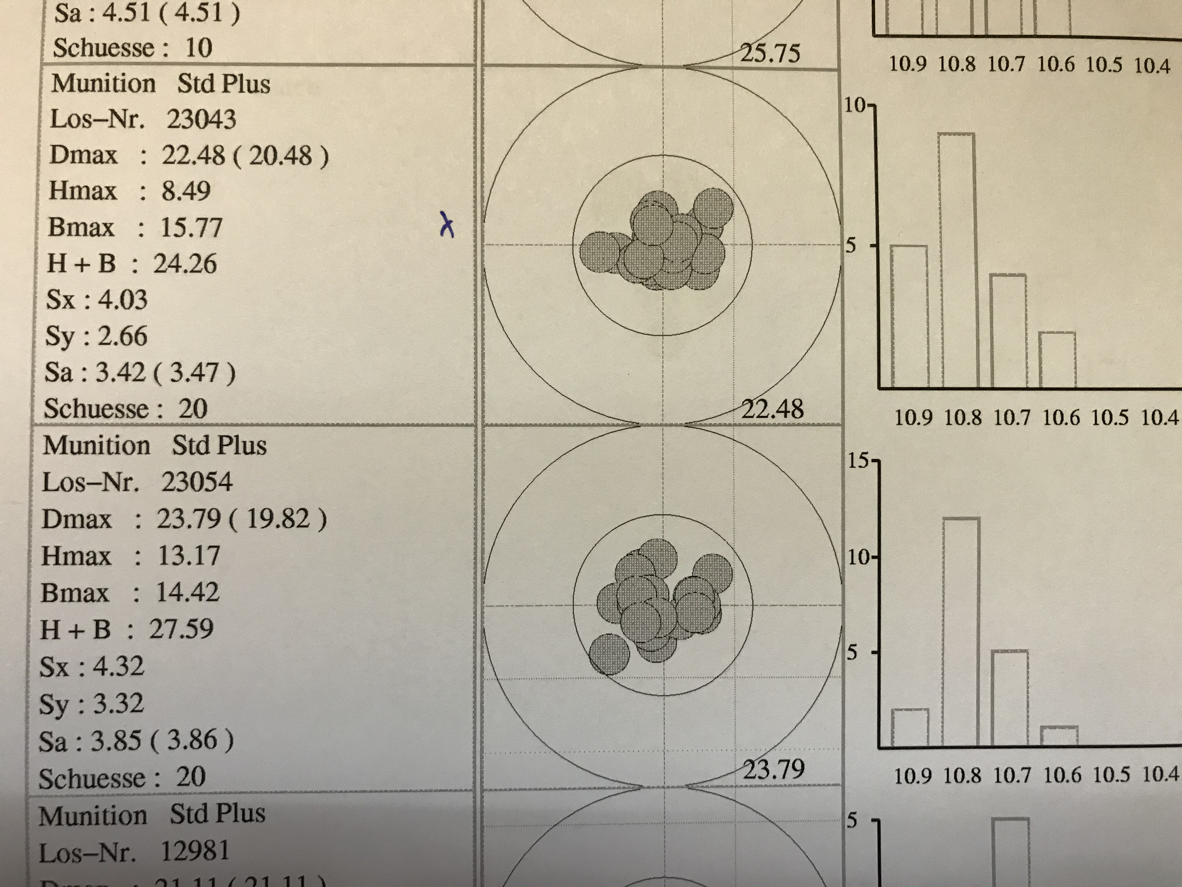 Zu sehen in der Tabelle rechts daneben. Bei 20 Schuss deutlich mehrmals 10,9 oder 10,8!!!