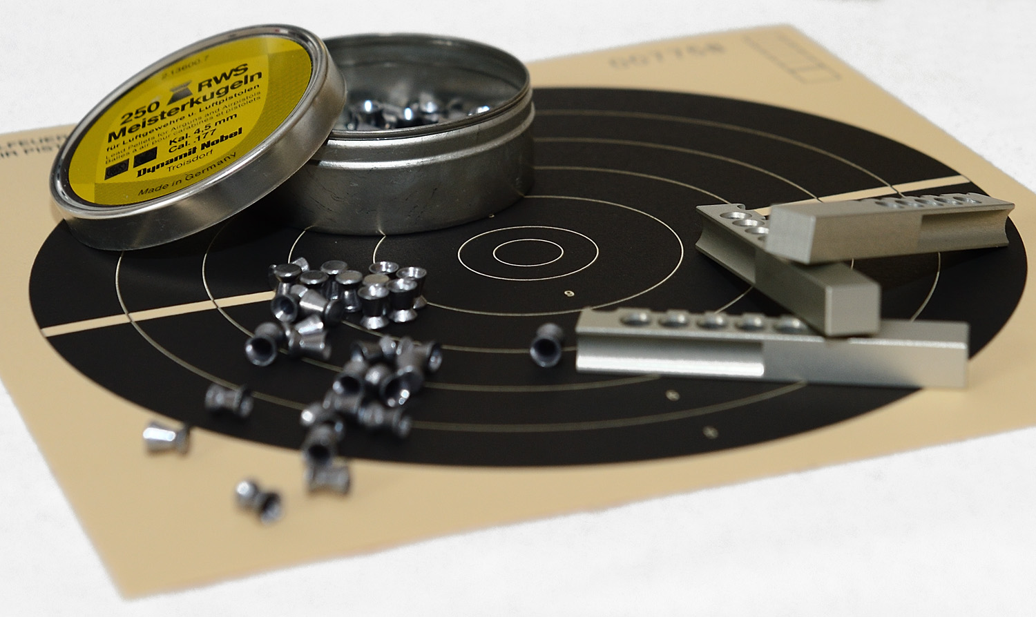 Hauptdarsteller Steyr LP 50 RF, surrounded by Scheiben und Diabolos.