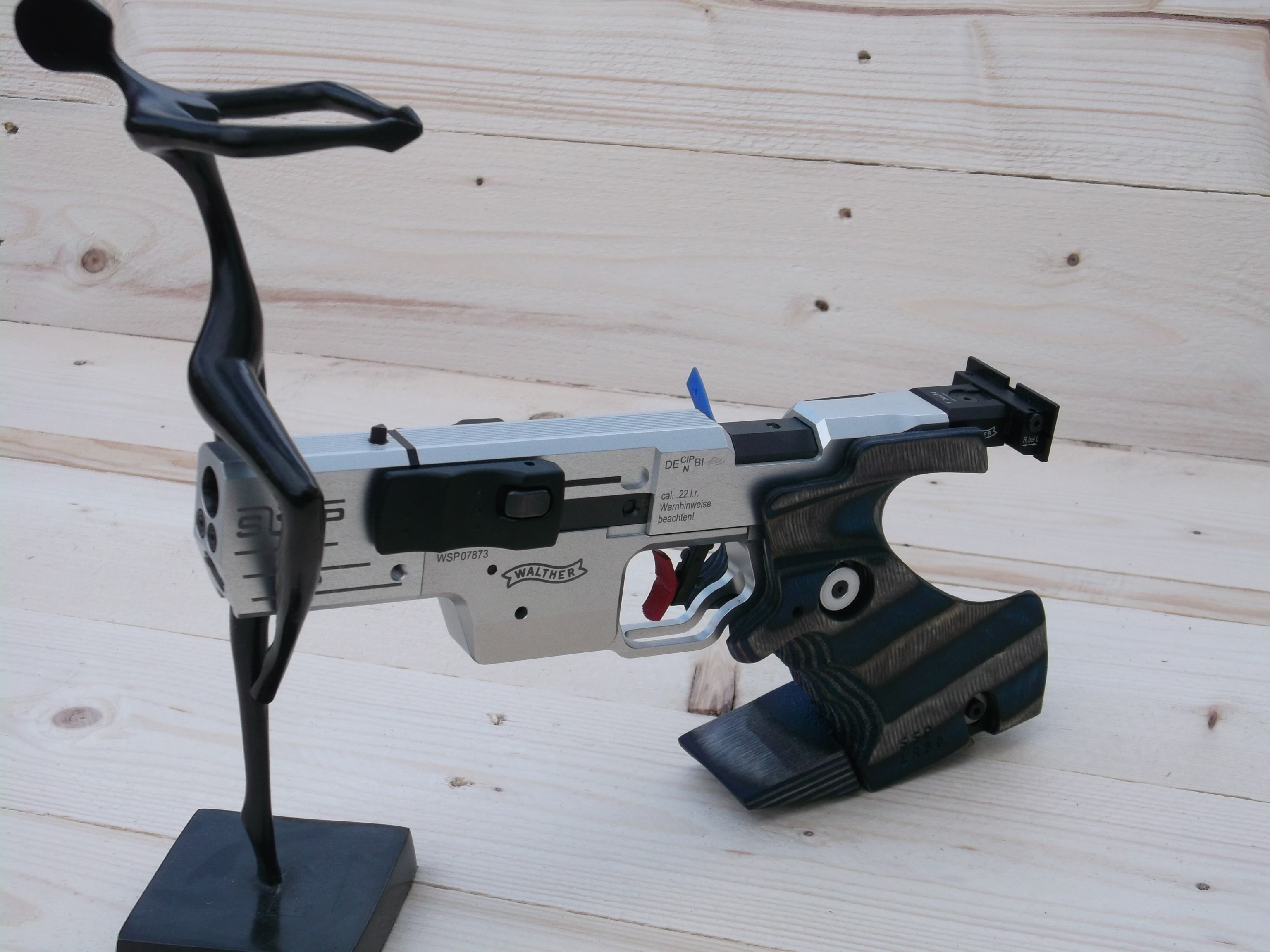Eine gewagte Pose. Senkrecht angeordnet hätte die Statue die Pistole auch umarmen können.