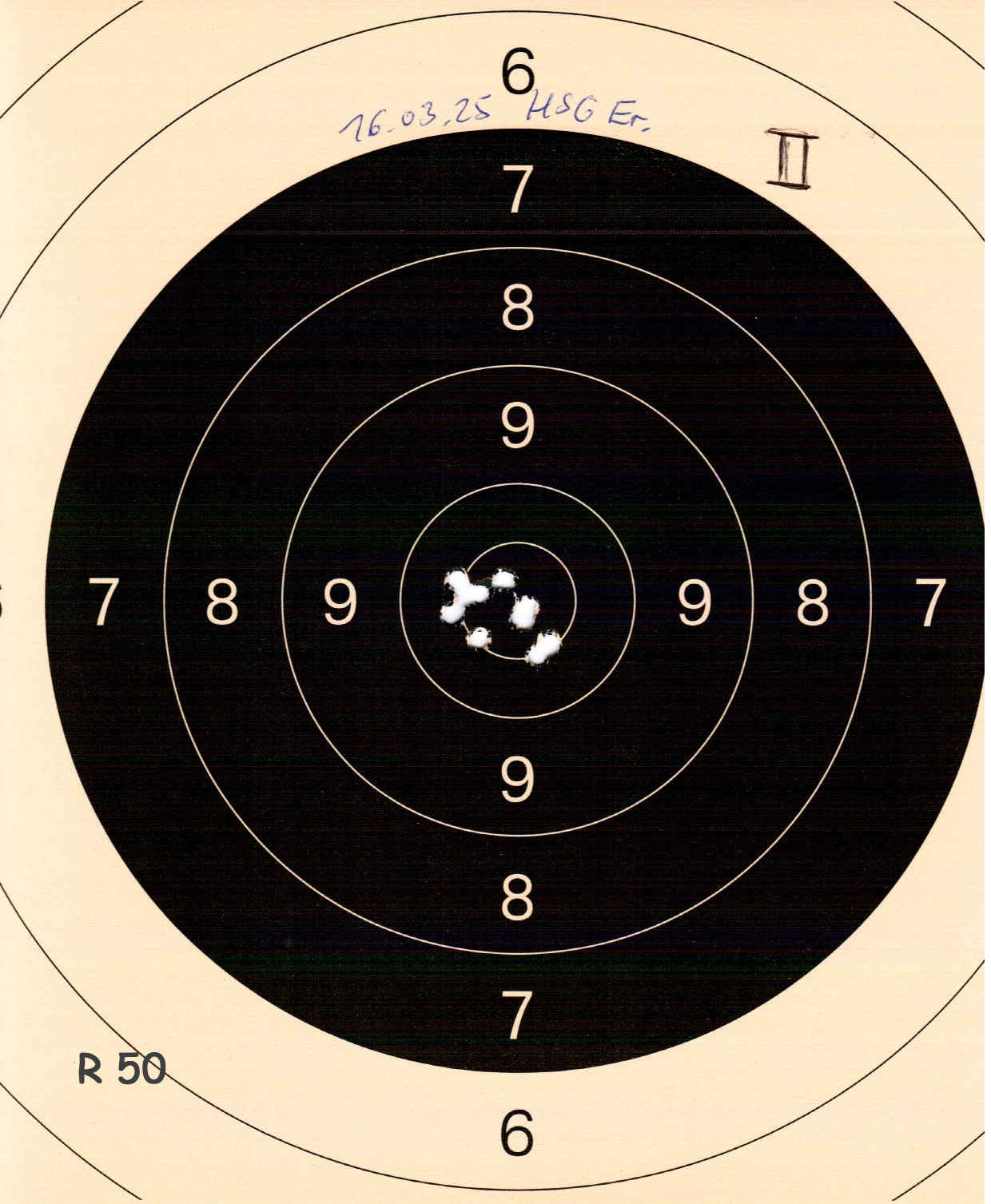 Alles ein Wenig links und tief, aber ansonsten passt´s schon. Denke ich mal. RWS R 50, Feinwerkbau KK 2602. Schmidt & Bender.