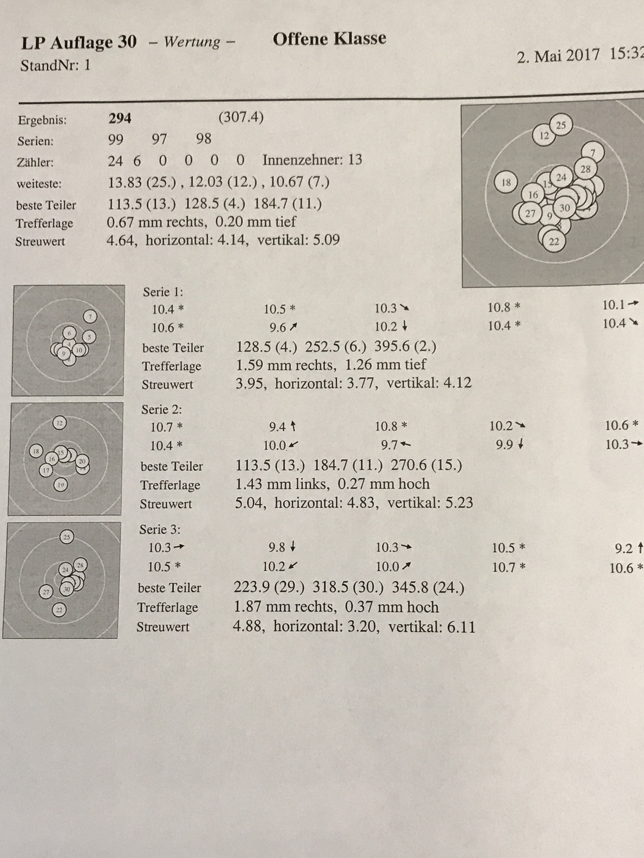 Ja so ist das! Am Anfang wollten die etwas älteren Schützen nur etwas Spaß und Unterhaltung. Inzwischen ist der ein oder andere Auflageschütze schwer enttäuscht, wenn er oder sie nur 299 schiesst! Ich erlebe das immer wieder bei Rundenwettkämpfen das von Jahr zu Jahr die Messlatte höher gesteckt wird.